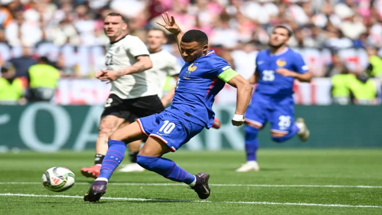 وعلى عكس مجريات اللعب، منح مبابي فرنسا التقدّم حين روّض كرة عرضية لزميله في ريال مدريد الاسباني أوريليان تشواميني ببراعة داخل المنطقة فتلاعب بيوزوا كيميش وسددها قوية بيمناه من مسافة قريبة حاول تير شتيغن إبعادها بيمناه لكنها ارتطمت بالقائم الايسر وعانقت شباكه (45).