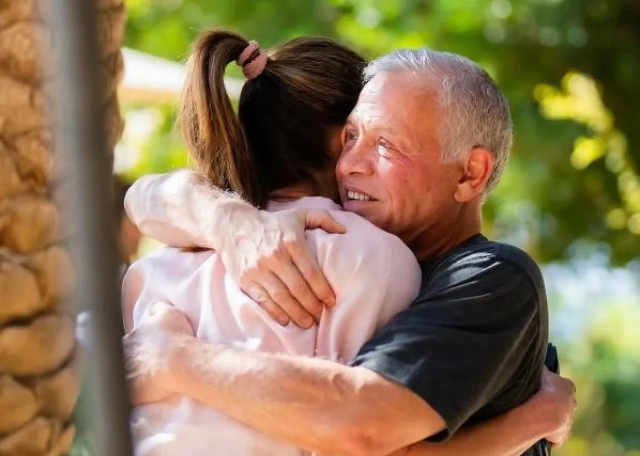 ونشرت الملكة صورة تجمعهما عبر انستغرام، معلقة عليها: "كيف لا أستند إلى قلبك ووطن بأكمله يستند إليك!".