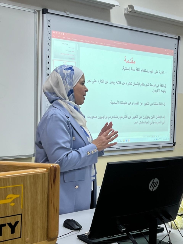 وشهدت الدورة حضورًا مميزًا من أعضاء الهيئة التدريسية وطلبة الجامعة حيث هدفت إلى تعريف المشاركين بمفهوم اضطرابات اللغة والكلام، وفهم المراحل الطبيعية لتطور اللغة عند الأطفال، بالإضافة إلى التعرف على الأسباب والعوامل المؤثرة في حدوث هذه الاضطرابات، وطرق التقييم والتشخيص، كما تناولت الورشة كيفية بناء خطة علاجية أولية استنادًا إلى نتائج التقييم، بالإضافة إلى تعزيز الوعي والاحترام والتواصل الإيجابي مع ذوي الاضطرابات، وغرس قيم العمل الجماعي ضمن الفريق العلاجي المتعدد التخصصات.