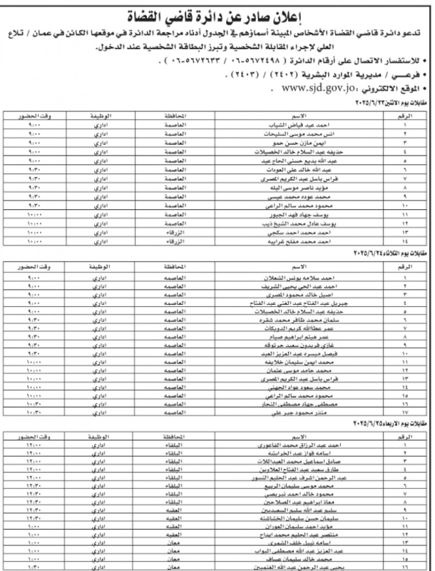الأردن.. شواغر وظيفية ومقابلات جديدة في مؤسسات حكومية