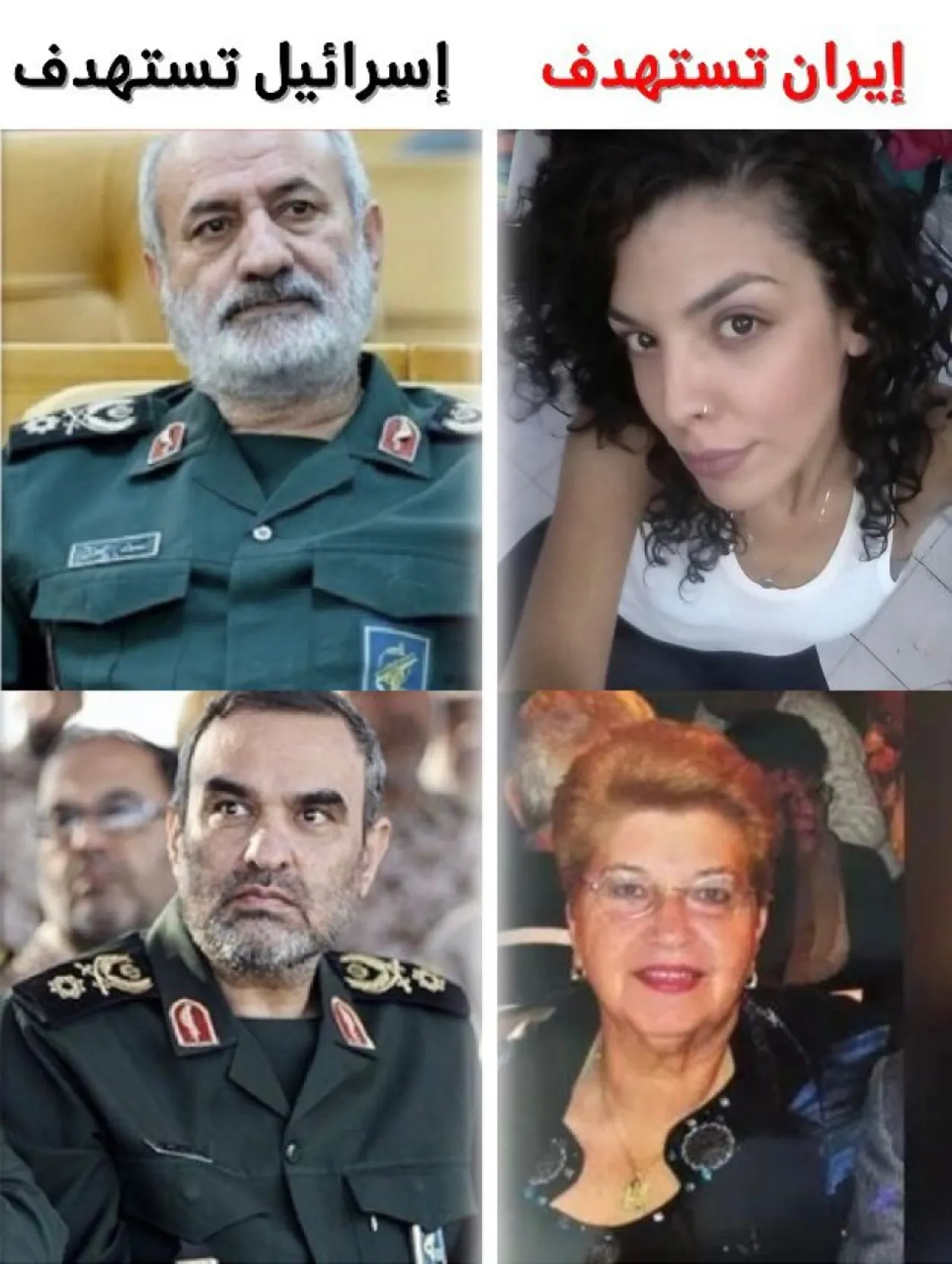 خبرني - نشرت صفحة اسرائيل بالعربي التابعة لوزارة الخارجية الاسرائيلية، منشورا يتضمن صورة من القتلى الاسرائيليين والقيادات الايرانية التي اغتالها الجيش الاسرائيلي ، مشيرة الى أن ايران تستهدف مدنيين ابرياء بشكل متعمد.
