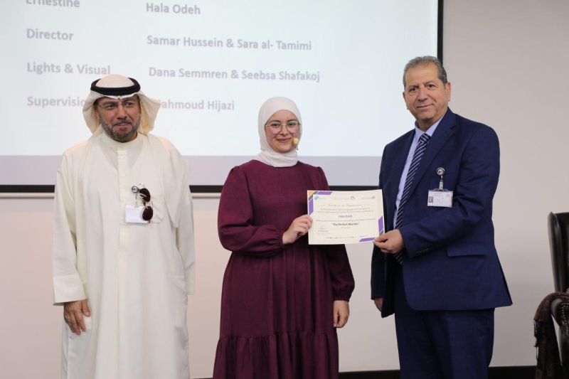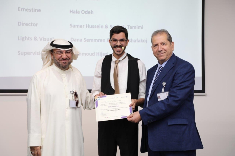 انطلاقاً من إيمان جامعة عمان العربية بأهمية دعم الإبداع الطلابي وصقل المهارات اللغوية والفنية، وبرعاية الأستاذ الدكتور محمد الوديان رئيس جامعة عمان العربية ، نظّم قسم اللغة الإنجليزية والترجمة في كلية الآداب والعلوم وبالتعاون مع مركز اللغات والترجمة في الجامعة عرضاً مسرحياً بعنوان "The Perfect Murder"، وذلك بحضور كلاً من: الدكتور متعب العتيبي عميد كلية الآداب والعلوم، والدكتورة وفاء العيد عميد كلية العلوم التربوية والنفسية، والدكتور بلال أبو قدوم عميد كلية الشريعة، والدكتور محمد بن طريف عميد شؤون الطلبة، إلى جانب عدد من أعضاء الهيئة التدريسية، وبمشاركة واسعة من طلبة الجامعة في أجواء تفاعلية مفعمة بالحيوية والإبداع.