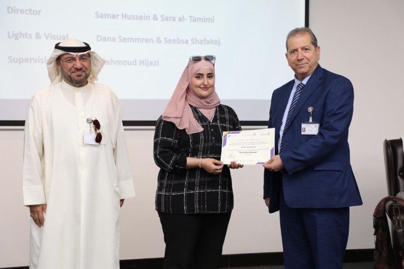 حيث هدفت المسرحية التي أشرف عليها الدكتور عبد العزيز الفواعرة مدير مركز اللغات والترجمة وعضو هيئة التدريس في قسم اللغة الإنجليزية والترجمة في كلية الآداب والعلوم ، إلى تسليط الضوء على مواهب الطلبة في الأداء المسرحي باللغة الإنجليزية، وتعزيز قدراتهم في الترجمة والتواصل الإبداعي، ضمن بيئة تعليمية تفاعلية تدعم التفكير النقدي والتعبير الفني ، وتناولت المسرحية في إطار درامي مشوق قصةً بوليسية تتمحور حول جريمة قتل غامضة تسعى الشخصيات إلى حل لغزها وكشف الحقيقة، وقد امتزجت في العرض عناصر التشويق النفسي والكوميديا السوداء، حيث تم تقديم الحبكة بأسلوب مشوّق يعتمد على الحوار الذكي والتسلسل الزمني المتداخل، ما أبقى الجمهور في حالة ترقب وتفاعل حتى اللحظة الأخيرة.