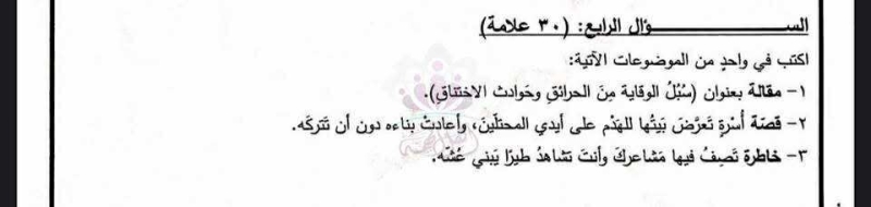 و خُيّر الطلبة بين ثلاثة مواضيع لكتابة التعبير، وهي: