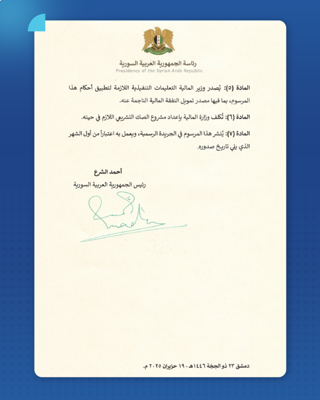 خبرني - اصدر الرئيس السوري أحمد الشرع ، اليوم الاحد ، مرسومين يقضيان بزيادة 200% على رواتب أصحاب المعاشات التقاعدية ، وزيادة بنسبة 200% على الرواتب والأجور المقطوعة للعاملين المدنيين والعسكريين.
