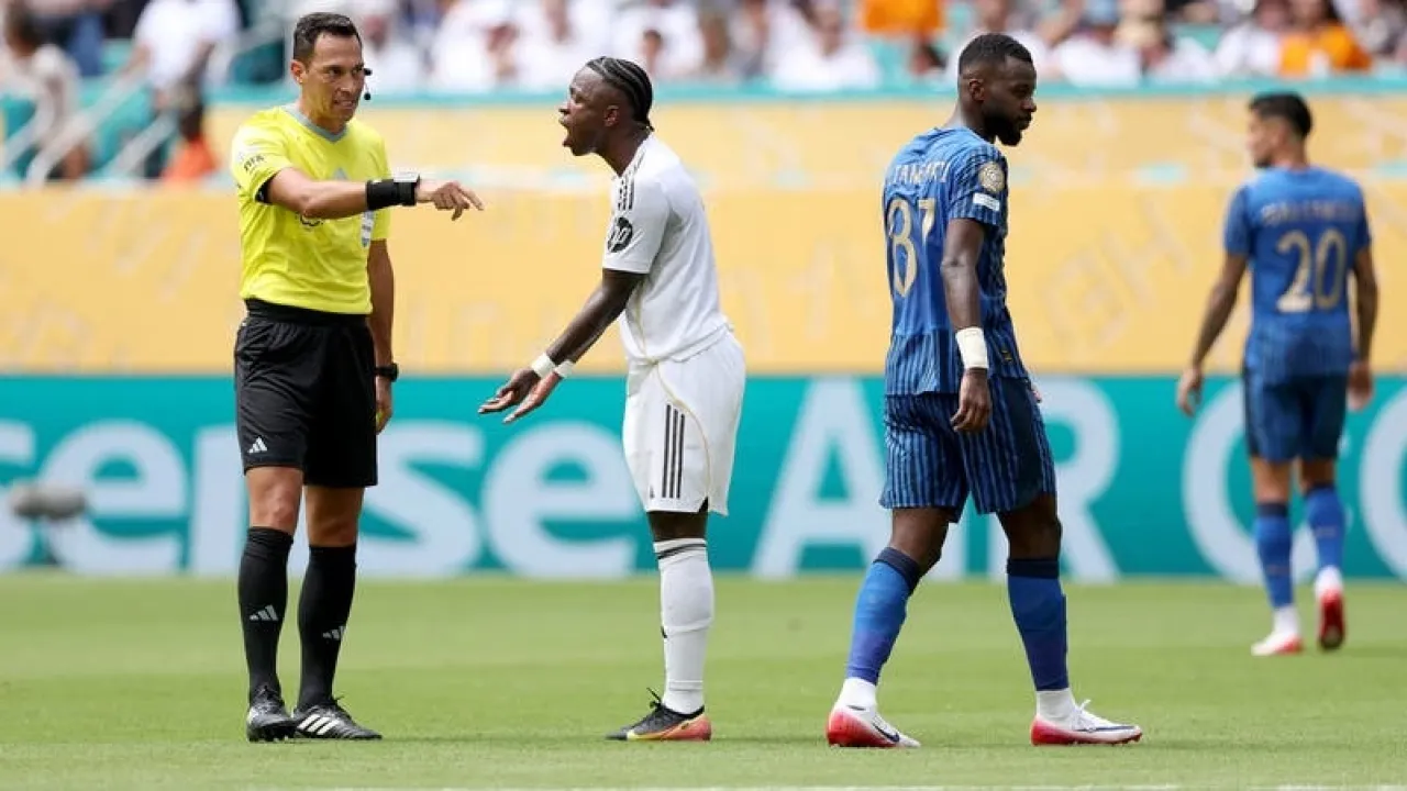 خبرني - لم يستطع تشابي ألونسو مدرب ريال مدريد الجديد تحمل تصرفات نجمه فينيسيوس جونيور وأمره بوقف "التمثيل" وذلك بعدما حصل على بطاقة صفراء إثر ادعائه التعرض لخطأ أمام الهلال السعودي بينما بطاقة صفراء أخرى ستحرمه من لعب مباراة في كأس العالم الأندية.