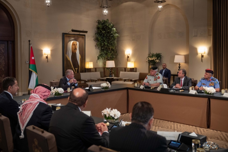 وحضر اللقاء رئيس الديوان الملكي الهاشمي يوسف حسن العيسوي، ومدير مكتب جلالة الملك، المهندس علاء البطاينة، ورئيس هيئة الأركان المشتركة اللواء الركن يوسف أحمد الحنيطي، ومدير المخابرات العامة اللواء أحمد حسني، ومدير الأمن العام اللواء الدكتور عبيدﷲ المعايطة.