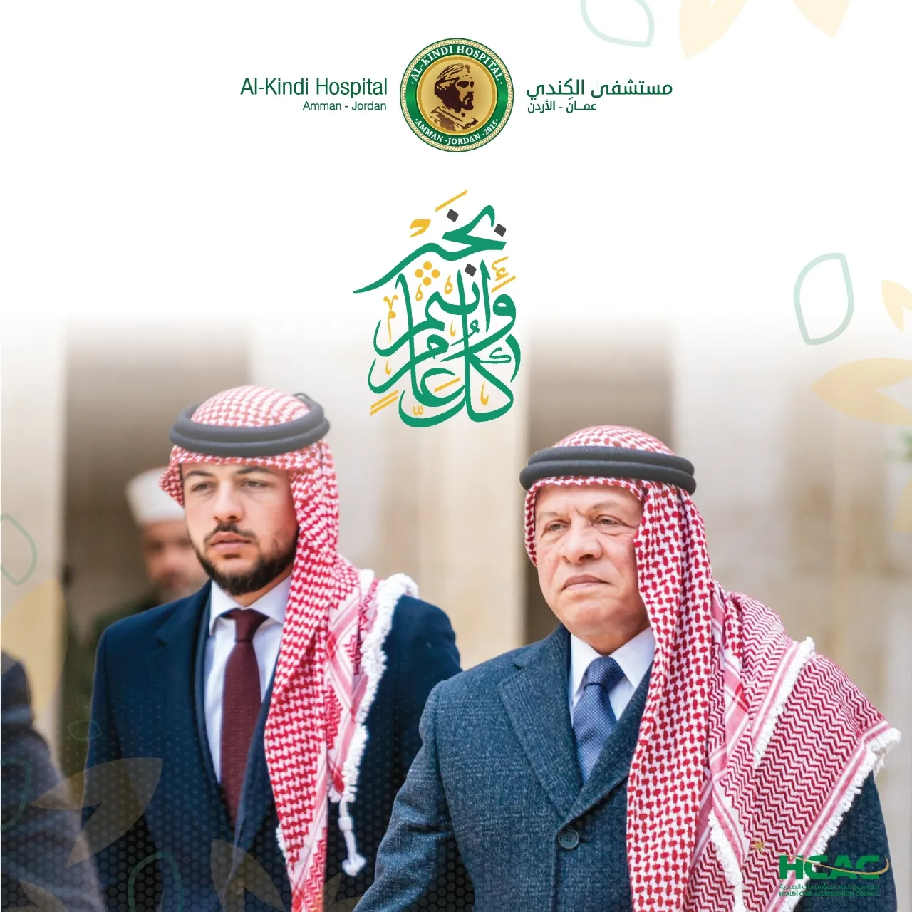 خبرني - رئيس هيئة المديرين في مستشفى الكندي الدكتور محمد خريس وأسرة المستشفى يرفعون الى مقام حضرة صاحب الجلالة الهاشمية الملك عبدالله الثاني بن الحسين المعظم وولي عهده الأمين الأمير الحسين بن عبدالله الثاني بأصدق التهاني والتبريكات بمناسبة ذكرى رأس السنة الهجرية .