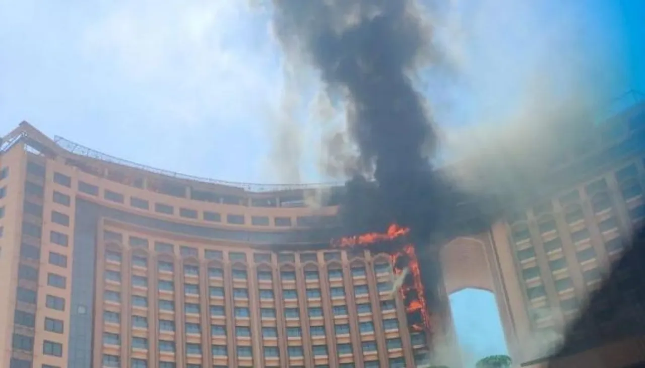 وأظهرت مقاطع فيديو وصور متداولة تصاعد ألسنة اللهب وأعمدة الدخان الكثيف من الطوابق العليا للفندق، بينما استنفرت فرق الدفاع المدني لمحاولة السيطرة على النيران.