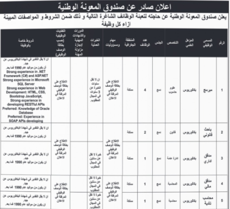 خبرني - أعلنت عدد من المؤسسات الرسمية، اليوم الأربعاء، عن حاجتها لتعبئة وظائف شاغرة، فيما دعت أخرى عددًا من المرشحين لإجراء المقابلات الشخصية.
