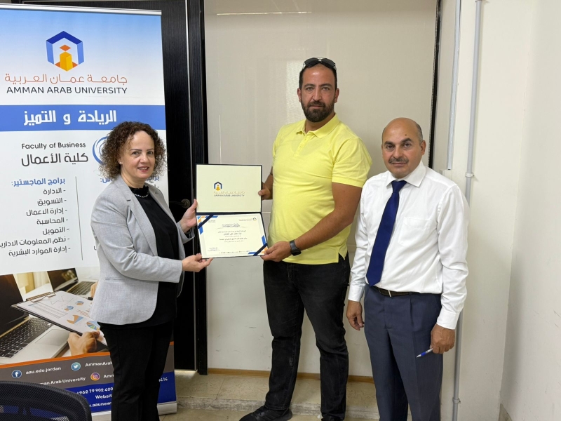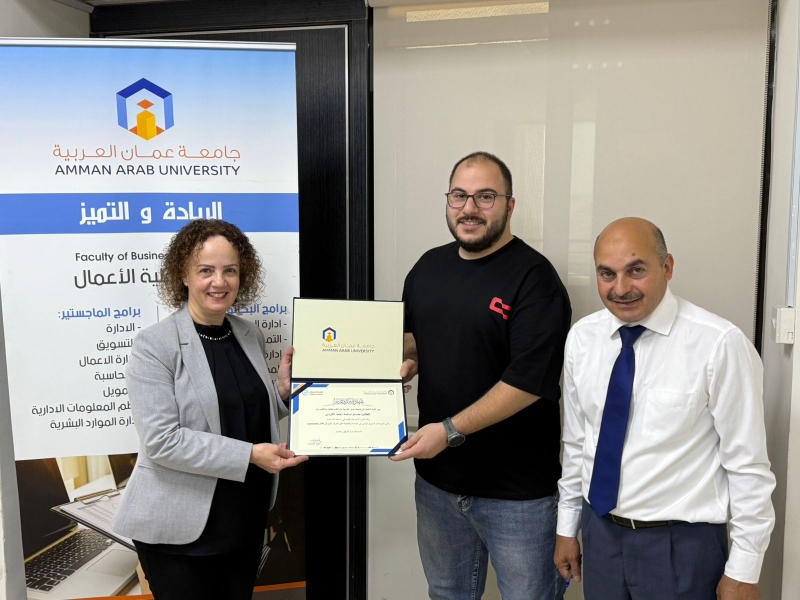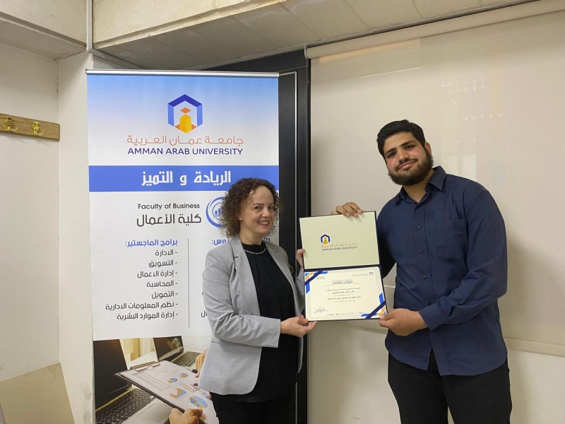 خبرني - انسجاماً مع رؤية ورسالة جامعة عمّان العربية الهادفة إلى تعزيز الإبداع والريادة وترسيخ مفاهيم التنمية المستدامة لدى الطلبة اختتمت كلية الأعمال في الجامعة فعالية "مسابقة الاستدامة والريادة والإبداع" والتي نُظّمت بالتعاون مع نادي طلبة الكلية وقسم التسويق الرقمي ضمن سلسلة من الأنشطة الهادفة إلى تمكين الطلبة وتفعيل دورهم في معالجة القضايا المجتمعية من خلال أدوات التسويق الرقمي والتصميم الإبداعي، وبمشاركة متميزة من طلبة الكلية بمختلف تخصصاتهم حيث قدّموا أعمالًا نوعية وتصاميم مبتكرة عكست مدى وعيهم بمفاهيم ريادة الأعمال والاستدامة في بيئة الأعمال الحديثة.