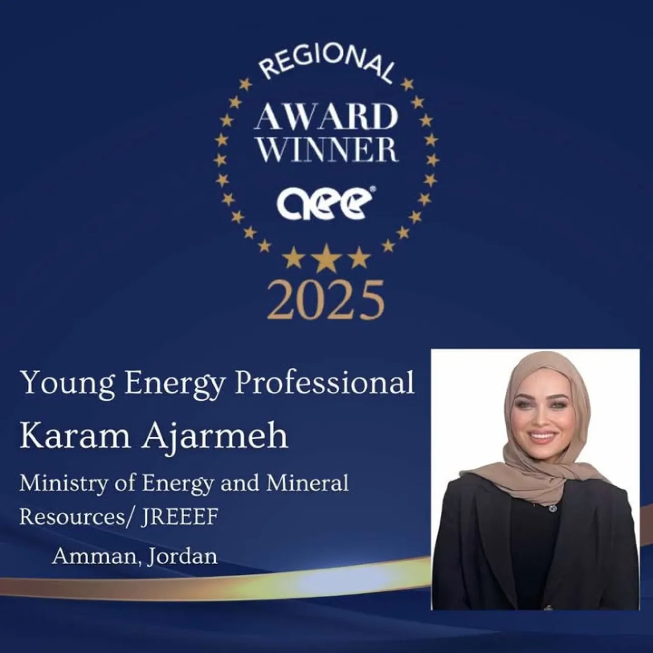 حازت المهندسة الاردنية كرم العجارمه على جائزة “Young Energy Professional of the Year” لعام 2025 عن منطقة الشرق الأوسط، والتي تُمنح من قبل جمعية مهندسي الطاقة (AEE).