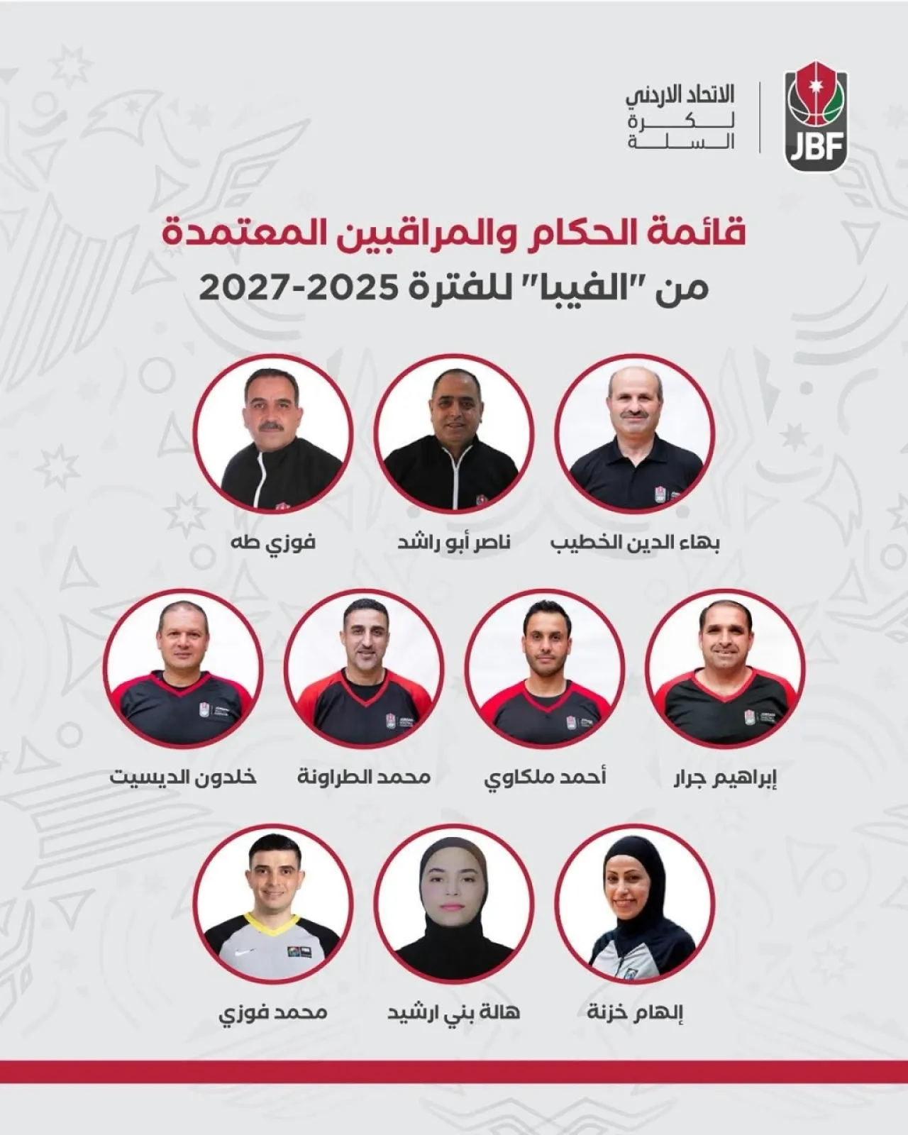 خبرني - أعلن الاتحاد الدولي لكرة السلة (فيبا) اليوم الجمعة، عن قائمته الرسمية للحكام الدوليين المعتمدين للفترة 2025–2027، والتي ضمّت عشرة حكام من الأردن، في خطوة تعكس المكانة المتقدمة التي بات يحتلها الحكم الأردني على الساحتين الإقليمية والدولية.