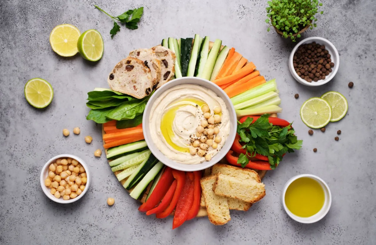 خبرني - يقدم طبق الحمص تقليديا مع خبز البيتا أو الخبز العربي في موطنه الأصلي في الشرق الأوسط، لكن انتشاره في الغرب أحدث تغييرات جذرية في طريقة تناوله، وأصبح يقدم مع الخضروات النيئة.
