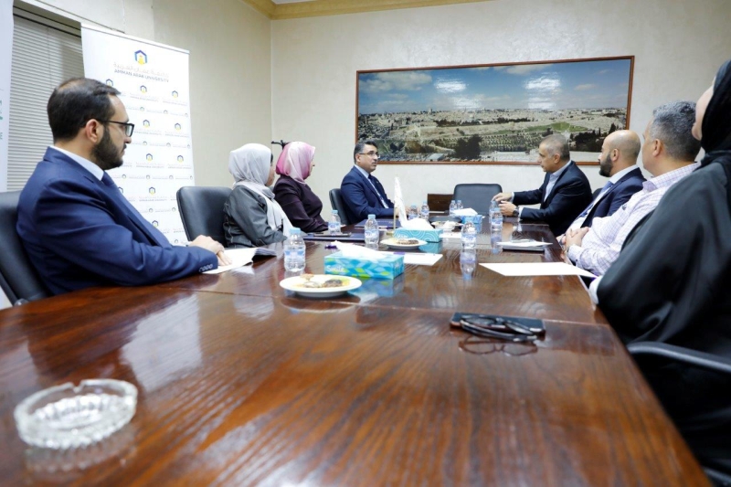 بدوره قدم الدكتور الحمد نبذة عن تاريخ ونشأة جامعة عمان العربية وكلياتها، والفرص التعليمية المتاحة للدارسين في الجامعة وعدد الطلبة المسجلين بكافة كليات الجامعة ، بالإضافة إلى التخصصات الفريدة من نوعها في الجامعة كتخصص المعلوماتية الحيوية، وتخصص علوم الكترونيات الطيران لدرجة البكالوريوس، فضلاً عن تجسيد روح الريادة والإبداع لدى الطلبة، مما يعكس جودة التعليم والبحث العلمي والحوكمة الأكاديمية فيها، وأشار إلى جهود الجامعة في تعزيز مفهوم المسؤولية المجتمعية من خلال مكتب المسؤولية المجتمعية التي تنفرد به جامعة عمان العربية على مستوى الجامعات الأردنية ، وأشار الدكتور الحمد إلى أن الجامعة حققت مؤخرًا مراكز متقدمة في عدد من التصنيفات العالمية مما يعكس جودة برامجها الأكاديمية والبحثية، والتزامها المستمر بمعايير التميز والجودة ، كما لفت إلى إنجاز نوعي جديد لجامعة عمان العربية تمثل في استحداث الكلية التقنية التي أقرها مجلس التعليم العالي مؤخراً لتكون إضافة نوعية إلى كليات الجامعة، وواحدة من المبادرات الريادية في قطاع التعليم العالي الأردني والتي تهدف إلى تقديم برامج تعليمية تركّز على المهارات التطبيقية والتقنية المتقدمة في مستويات البكالوريوس والدبلوم، بما يتماشى مع احتياجات سوق العمل ورؤية الأردن الاقتصادية، وتعتمد في نهجها على التدريب العملي، والشراكات مع القطاع الصناعي، وحاضنات الابتكار، ما يجعلها منصة رائدة لإعداد كفاءات مؤهلة لسوق العمل المحلي والدولي.