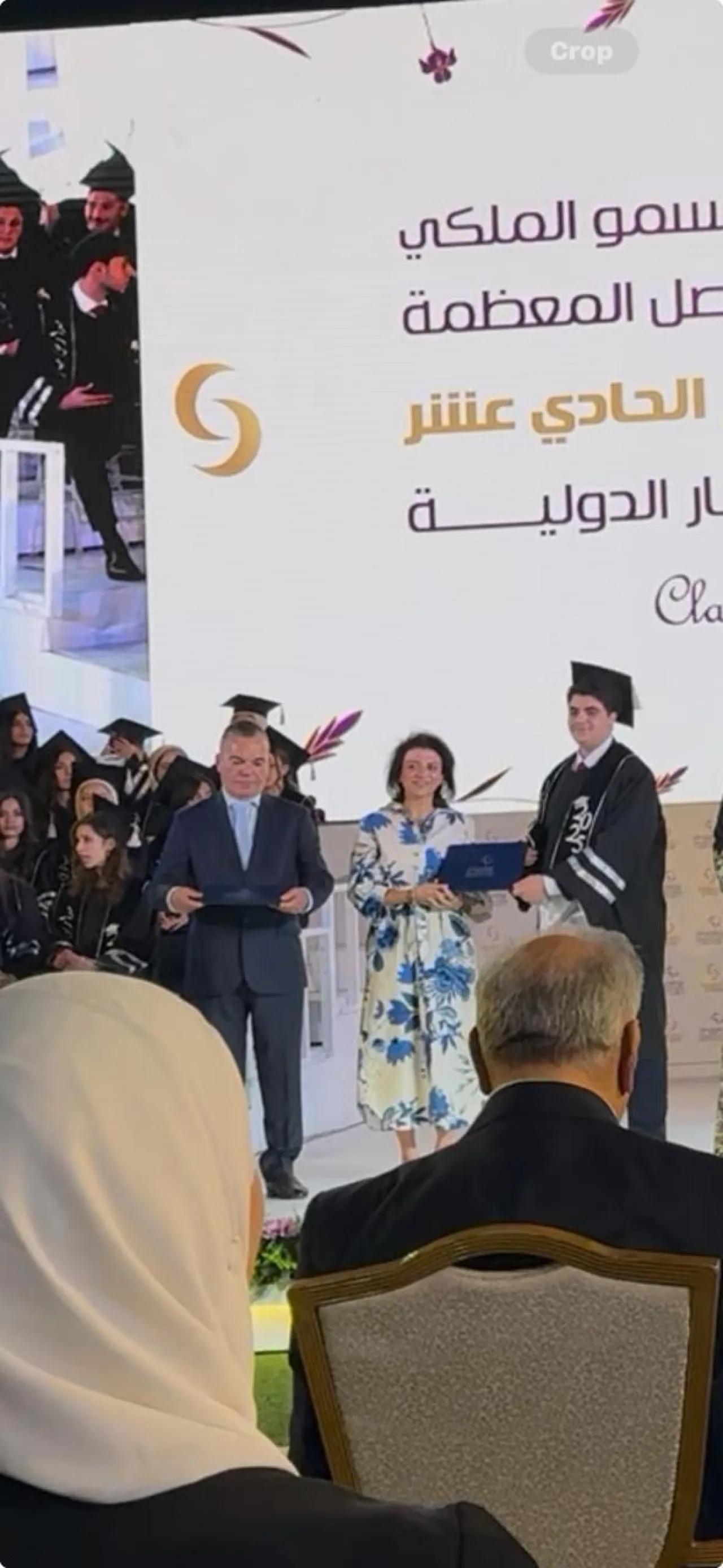 خبرني - يبارك الأصدقاء والعائلة للمستشار المالي محمد ذياب، وزوجته الأستاذة الدكتورة ميرفت الصوص، بمناسبة تخرّج ابنهم باسل من مدارس ميار الدولية، وتسلمه شهادة التخرج من قبل سمو الأميرة اية الفيصل المعظمة وتتويجه بهذه المرحلة المهمة من مسيرته التعليمية.