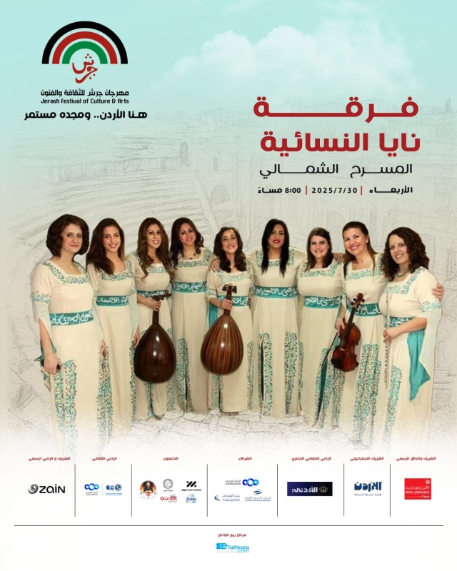 خبرني - في أمسية موسيقية منتظرة ضمن فعاليات مهرجان جرش 2025، تطل فرقة نايا، أول فرقة موسيقية نسائية في الأردن، على جمهور المسرح الشمالي يوم الثلاثاء 30 تموز، في تمام الساعة 8:00 مساءً.