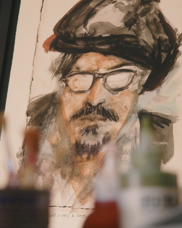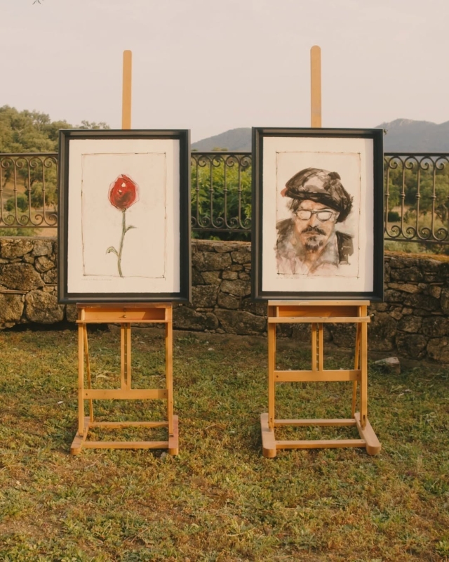 وتضمنت اللوحات، صورة "بورتريه" لجوني ديب رسمها بنفسه بالألوان المائية ولها طابع عاطفي خاص، حيث قال عنها: "إنها تُجسّد ما كنت أشعر به في ذلك الوقت. حاضرٌ تماماً".