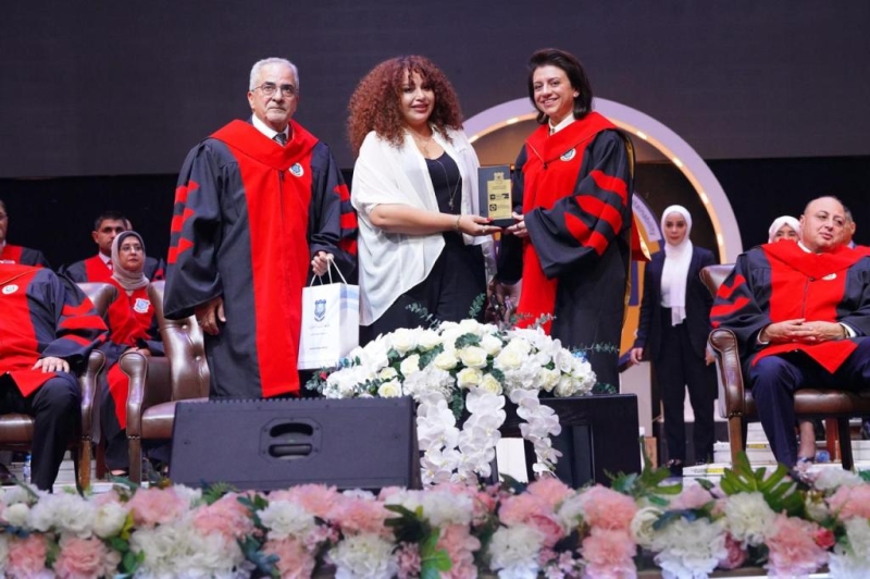 كما تم تكريم خريجة الجامعة المتميزة بانا جمال رائد دراغمة التي جمعت بين التفوق الأكاديمي والتميّز الرياضي ، حيث تخرّجت من الجامعة بتقدير امتياز في التربية البدنية والصحية، وحققت إنجازات دولية في التايكواندو، أبرزها ذهبية بطولة الحسن الدولية وفضيتان في بطولتي الفجيرة واليونان وآخرها ذهبية بطولة الجامعات الأردنية لترفع اسم الجامعة عالياً. كما أن بانا تواصل مسيرتها كمدربة محترفة للاعبي المنتخب الوطني، مسهمة في رفع اسم الأردن رياضياً.