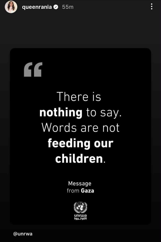 خبرني - أعادت جلالة الملكة رانيا العبدالله، نشر رسالة من وكالة الغوث الدولية لإغاثة وتشغيل اللاجئين الفلسطينيين “الأونروا”، عبر خاصية الستوري على إنستغرام بشأن غزة.