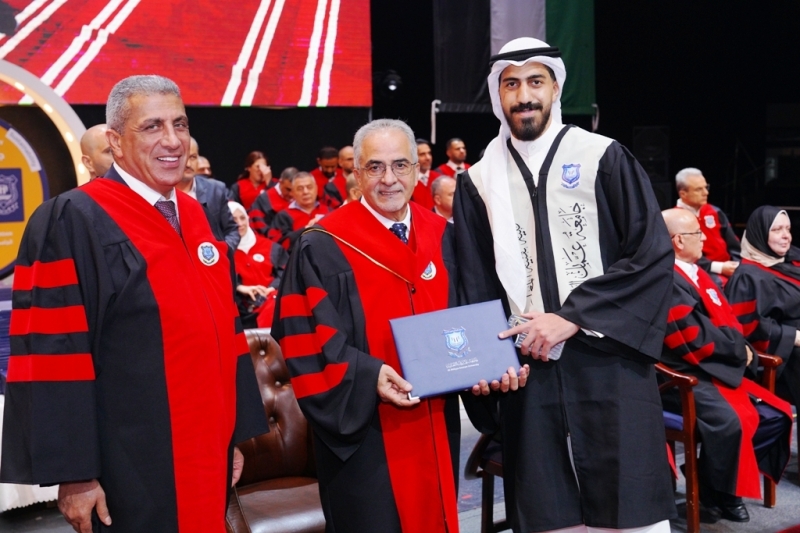 • ثم قام الاستاذ الدكتور أحمد حمدان (نائب الرئيس وعميد كلية طب الاسنان) بقراءة بيان التخريج مؤكداً أن هؤلاء الطلبة من الكليات المختلفة لدرجتي البكالوريوس والماجستير ، والتي شملها حفل اليوم قد أتموا متطلبات الحصول على درجاتهم التي يستحقونها ، داعيا الى تسليمهم شهاداتهم .