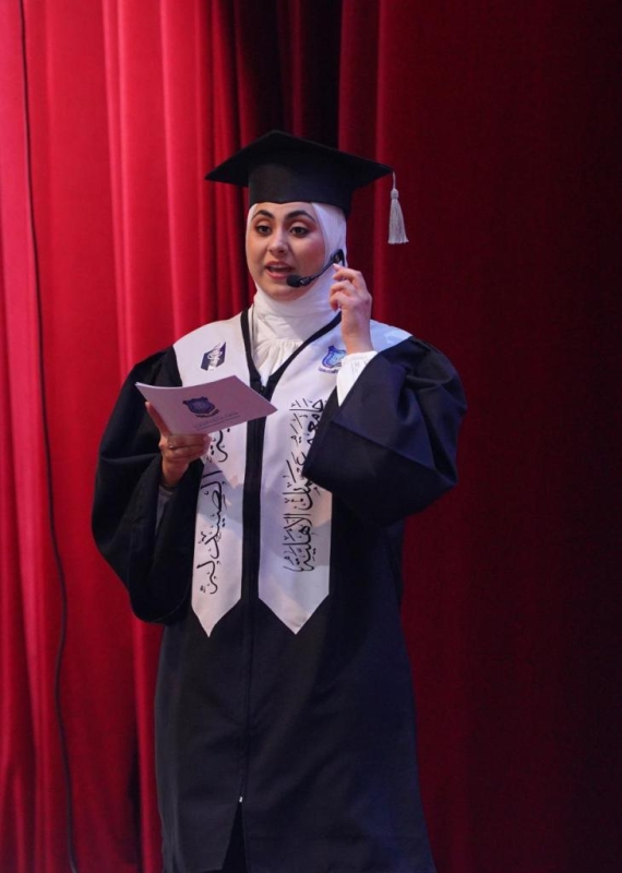 • وقد قامت بعرافة الحفل الطالبتان ملك الحوراني من كلية الصيدلة ، وزين ماهر من كلية العلوم الطبية المساندة ... وقدمتا فقرات الحفل بالتناوب بكلمات مؤثرة وجميلة قبل كل فقرة لقيت ترحيب واستحسان الحضور .