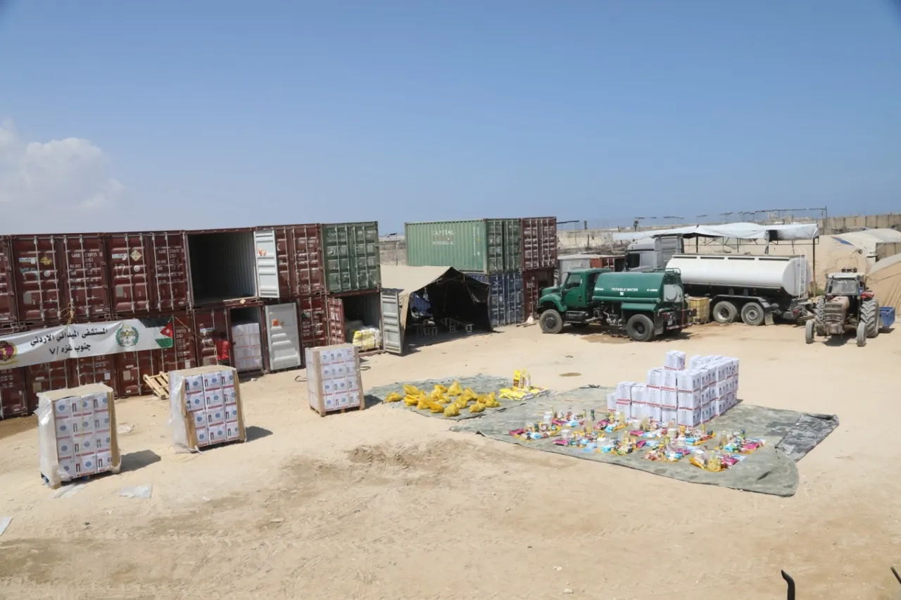 وقال قائد قوة المستشفى: " إنه وبالتنسيق مع الهيئة الخيرية الأردنية الهاشمية، وزعت عدد من الطرود والمساعدات الغذائية التي تحتوي على المواد الأساسية مثل الزيت، والأرز، والطحين، للأهل والأشقاء في قطاع غزة"، وذلك من خلال الجمعيات والهيئات والمؤسسات الخيرية المتواجدة في مدينة خان يونس.