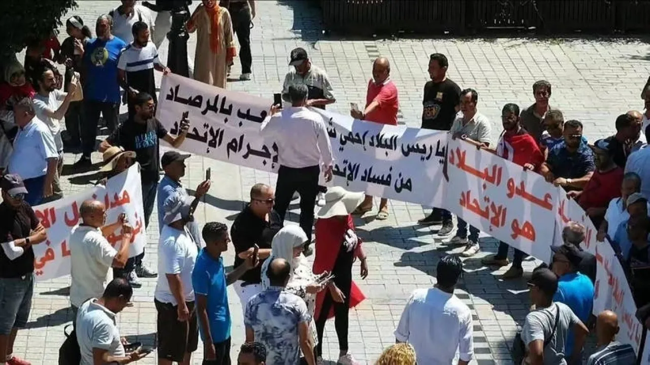 واتهم المحتجون قيادة الاتحاد بـ"تخريب الاقتصاد الوطني وتعطيل مؤسسات الدولة والتنمية"، داعين الرئيس قيس سعيّد إلى التدخل لوضع حد لـ"تغوّل" المنظمة النقابية.