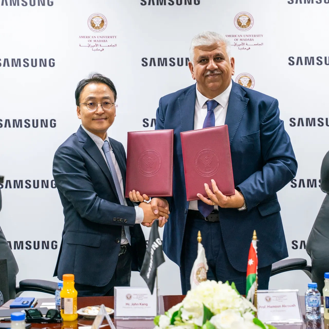 وقد وقع مذكرة التفاهم المدير العام لشركة سامسونج إلكترونيكس المشرق العربي، جونغ هو كانج، ورئيس الجامعة الأمريكية في مادبا، الأستاذ الدكتور مأمون عكروش، بحضور عدد من مسؤولي كلا الجانبين.