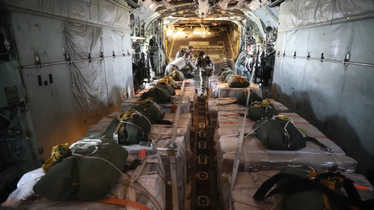 خبرني - نفذت القوات المسلحة الأردنية، الثلاثاء، عملية إنزال جوي إلى قطاع غزة، شاركت فيه بالإضافة إلى طائرات سلاح الجو الملكي الأردني، طائرات من جمهورية ألمانيا الاتحادية ودولة الإمارات العربية المتحدة ومملكة بلجيكا وجمهورية فرنسا وجمهورية إيطاليا، حملت على متنها نحو (75) طنا من المواد الغذائية والإغاثية.