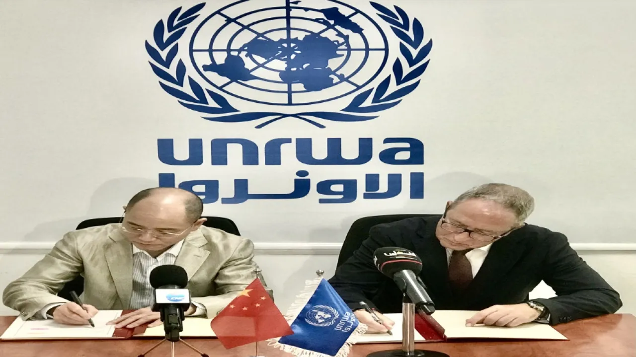 ووقع الاتفاقية، السفير الصيني مع مدير الشراكات في دائرة العلاقات الخارجية بالأونروا كريم عامر، وذلك مقر الوكالة في الأردن.
