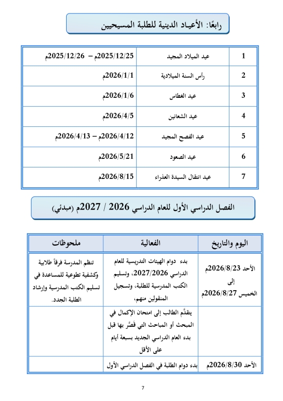 يمكن الاطلاع على التقويم المدرسي كاملاً في المرفقات أدناه: