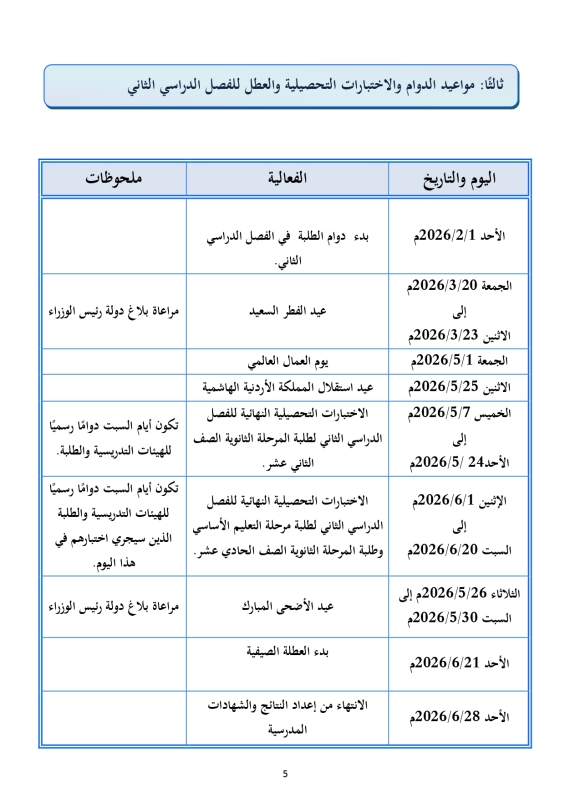 خبرني - نشرت وزارة التربية والتعليم التقويم المدرسي للمدارس الخاصة ومدارس وكالة الغوث في الأردن.