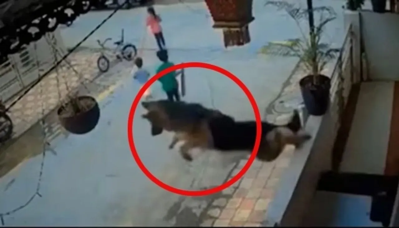 وأظهر المقطع المتداول نحو 3 أطفال يسيرون في أحد الشوارع بينما يتعقبهم كلب ضال، وفي لحظة مباغتة، اندفع الكلب البطل من شرفة أحد المنازل وقفز بقوة مذهلة نحو الأرض، ليهاجم الكلب الهائج ويبعده فوراً عن الأطفال.