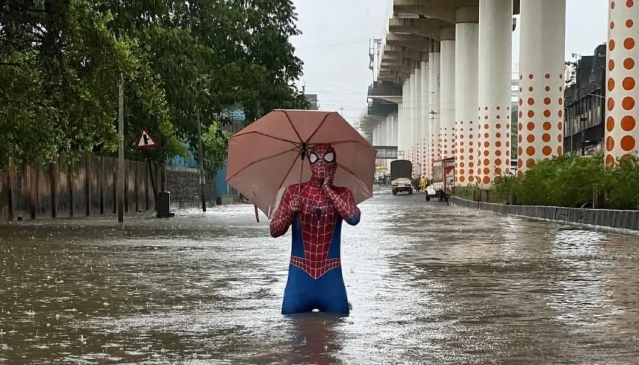 خبرني - شهدت مدينة مومباي واحدة من أغرب المشاهد التي لفتت الأنظار وسط الفيضانات التي خلفتها الأمطار الغزيرة، بعدما ظهر رجل متنكراً بزي شخصية "سبايدر مان" الشهيرة وهو يحاول المساعدة في تصريف مياه الأمطار المتراكمة في أحد الشوارع المغمورة بالمياه.