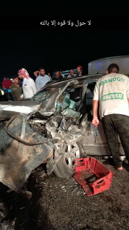 خبرني - طلبت عائلة الضمير ـ السرحان الدعاء بالشفاء العاجل لثلاثة شبان من عشيرة السرحان ـ البالي، بعد تعرضهم لحادث سير مروع، أدى إلى تأجيل زفاف أحدهم.