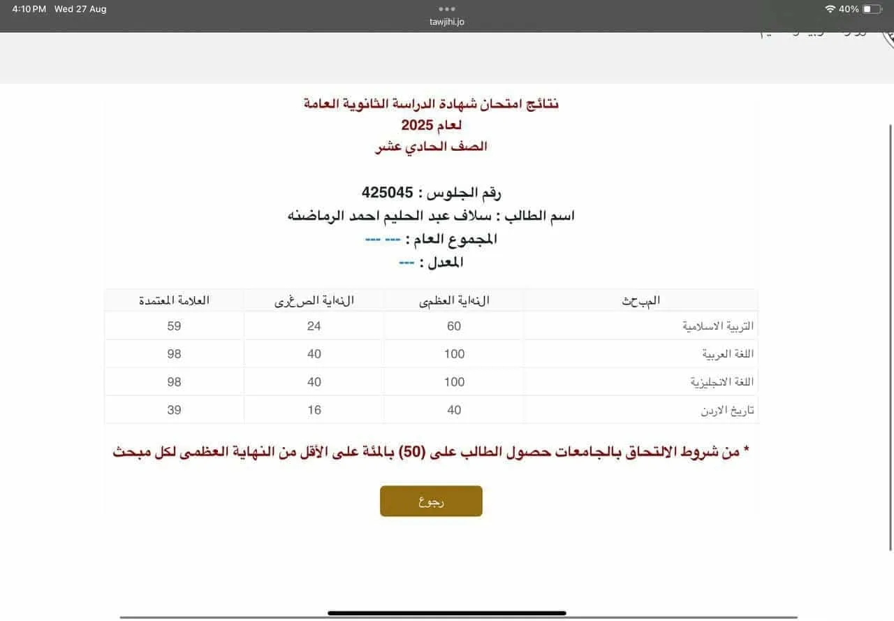 خبرني - الاهل والاصدقاء يباركون للطالبة سلاف عبدالحليم الرماضنه بمناسبة نجاحها في الثانوية العامة .