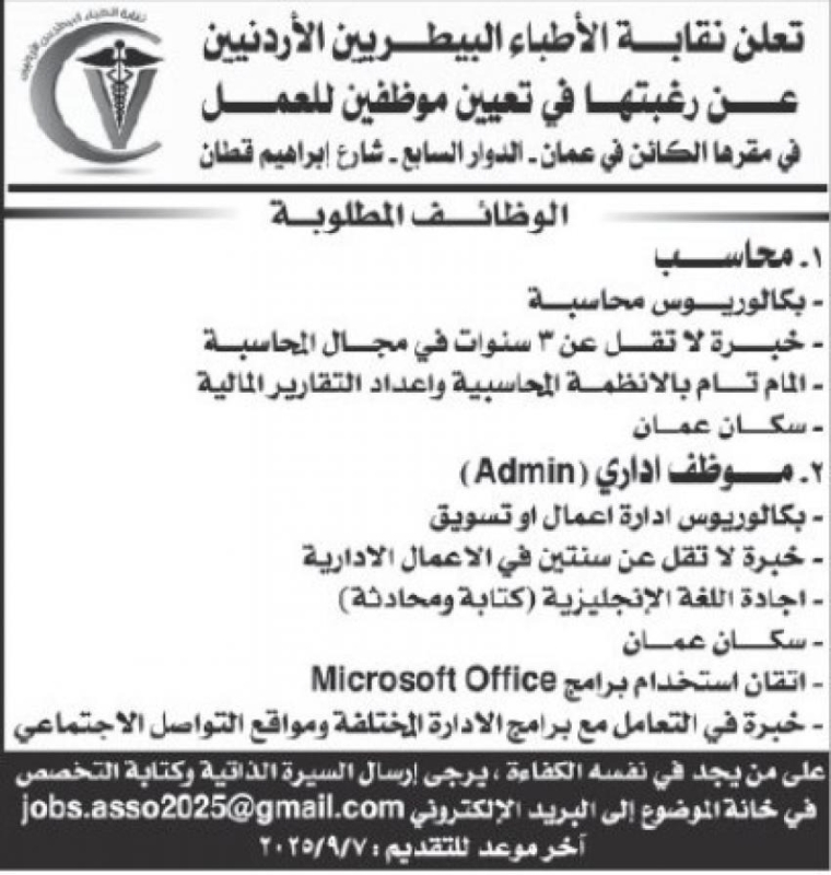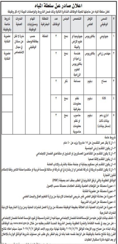 خبرني -  أعلنت مؤسسات حكومية اليوم الخميس عن حاجتها لتعبئة شواغر وظيفية.