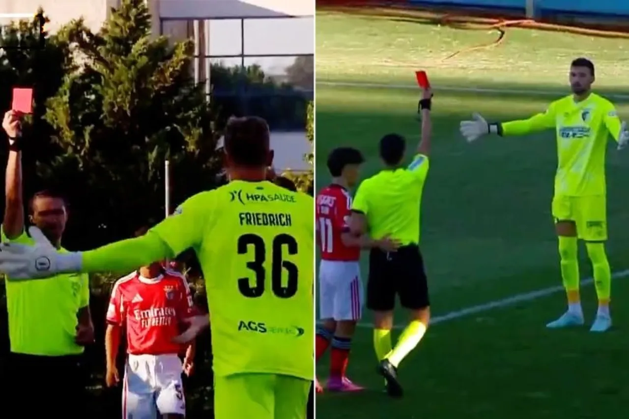 خبرني - شهدت إحدى المباريات في دوري الدرجة الثانية البرتغالية حادثة نادرة في تاريخ كرة القدم، بعد طرد حارسي مرمى فريق واحد في غضون دقائق قليلة.