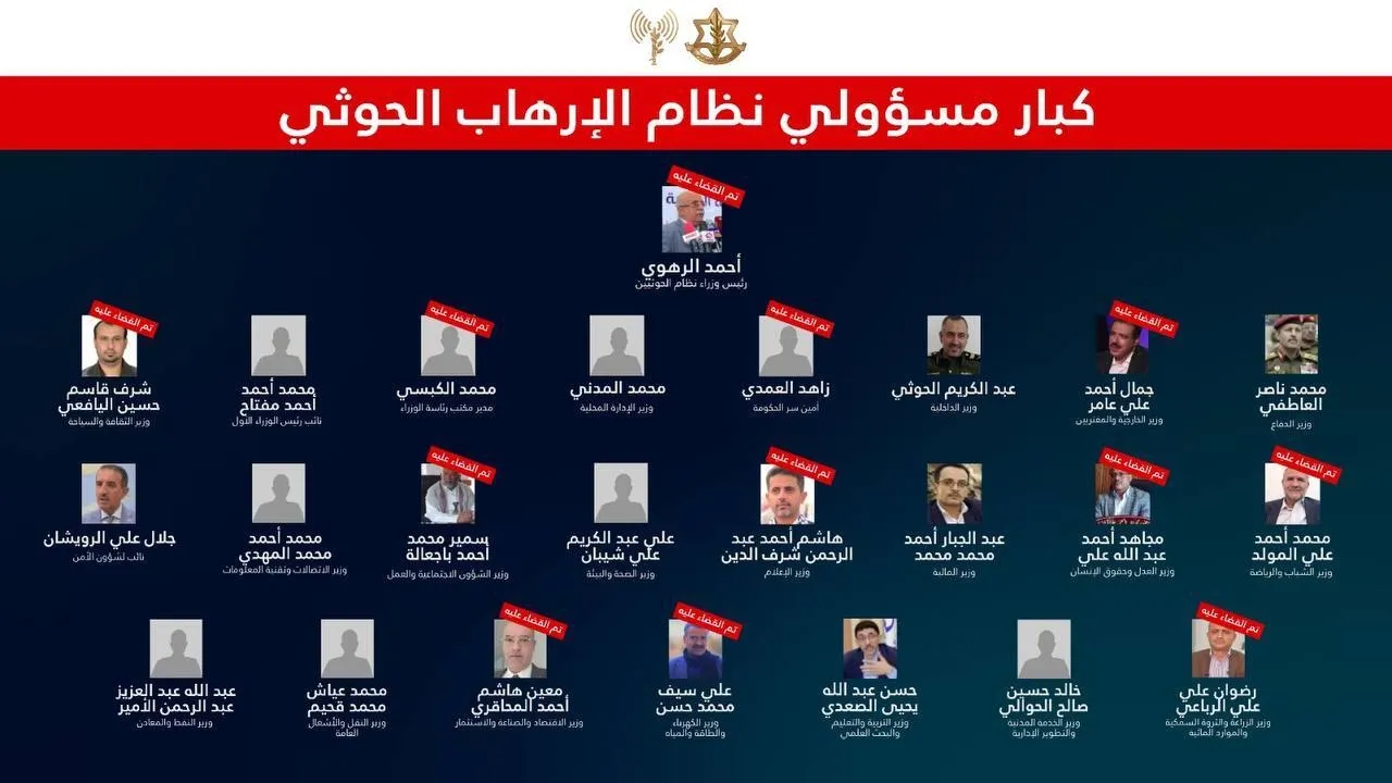 خبرني - زعم جيش الاحتلال ، مساء الخميس، القضاء على 12 مسؤولا بارزا في قيادة الحوثيين.