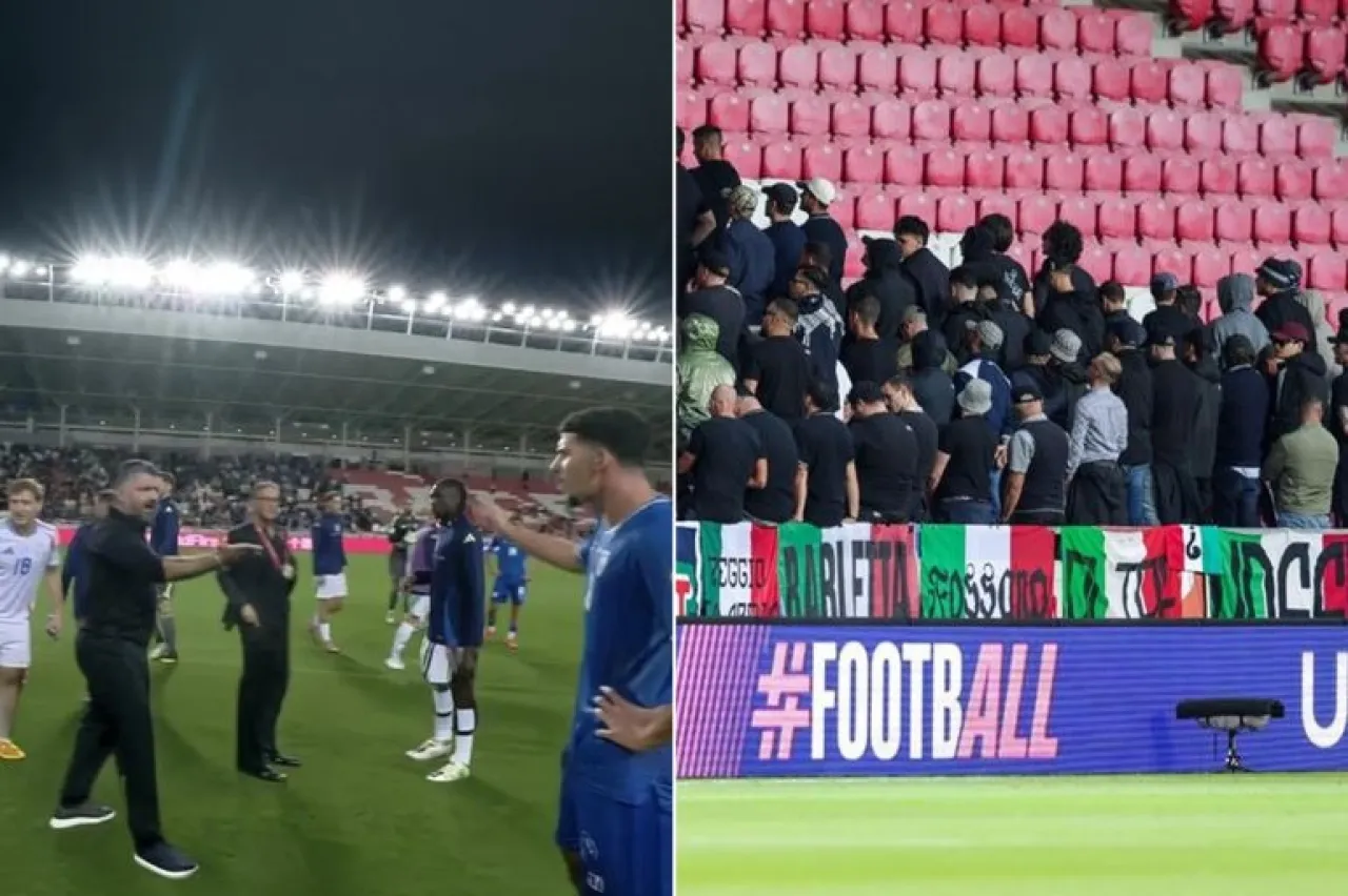 ولم يقتصر موقف التضامن على غاتوزو، إذ كان للمشجعين الإيطاليين حضور لافت، حيث أداروا ظهورهم للملعب أثناء عزف النشيد الإسرائيلي، ورفعوا لافتات تحمل كلمة "توقفوا" بالإنجليزية، في مشهد مشابه لما فعلوه عند لقاء المنتخبين في سبتمبر/أيلول الماضي بدوري الأمم الأوروبية.