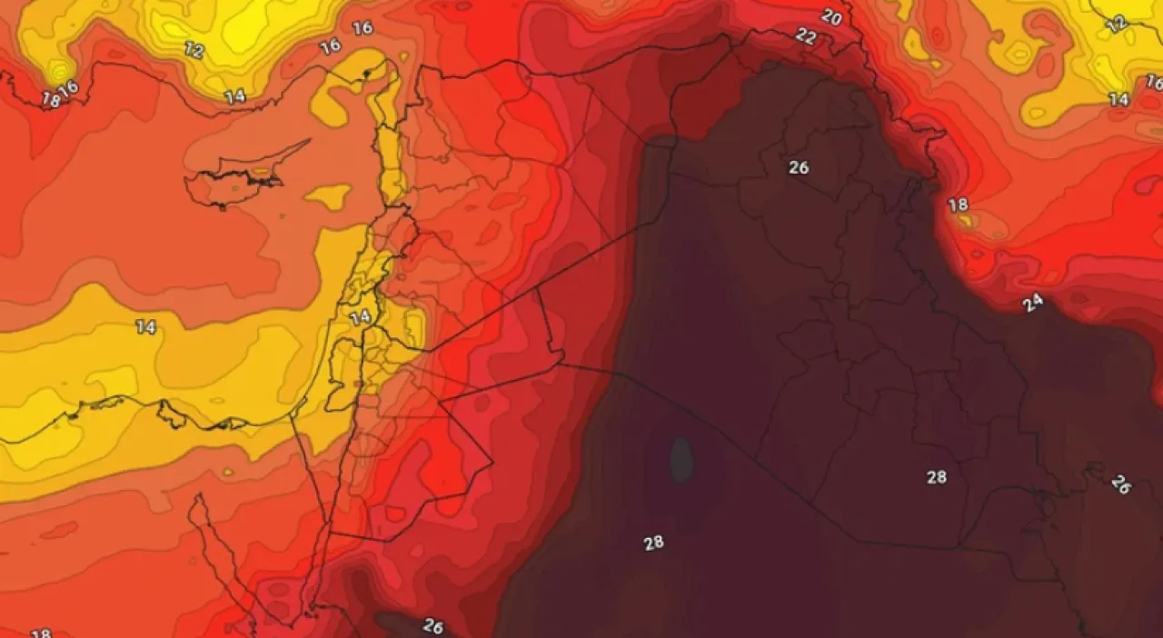 وتكون درجات الحرارة العظمى يومي الأحد والإثنين في منتصف العشرينيات المئوية إلى أعلى بقليل فوق المرتفعات الجبلية العالية بما فيها مرتفعات غربي العاصمة عمان، بينما تصل إلى نهاية العشرينيات في بقية المناطق المنخفضة، وتلامس نهاية الثلاثينيات في الأغوار والبحر الميت والعقبة.