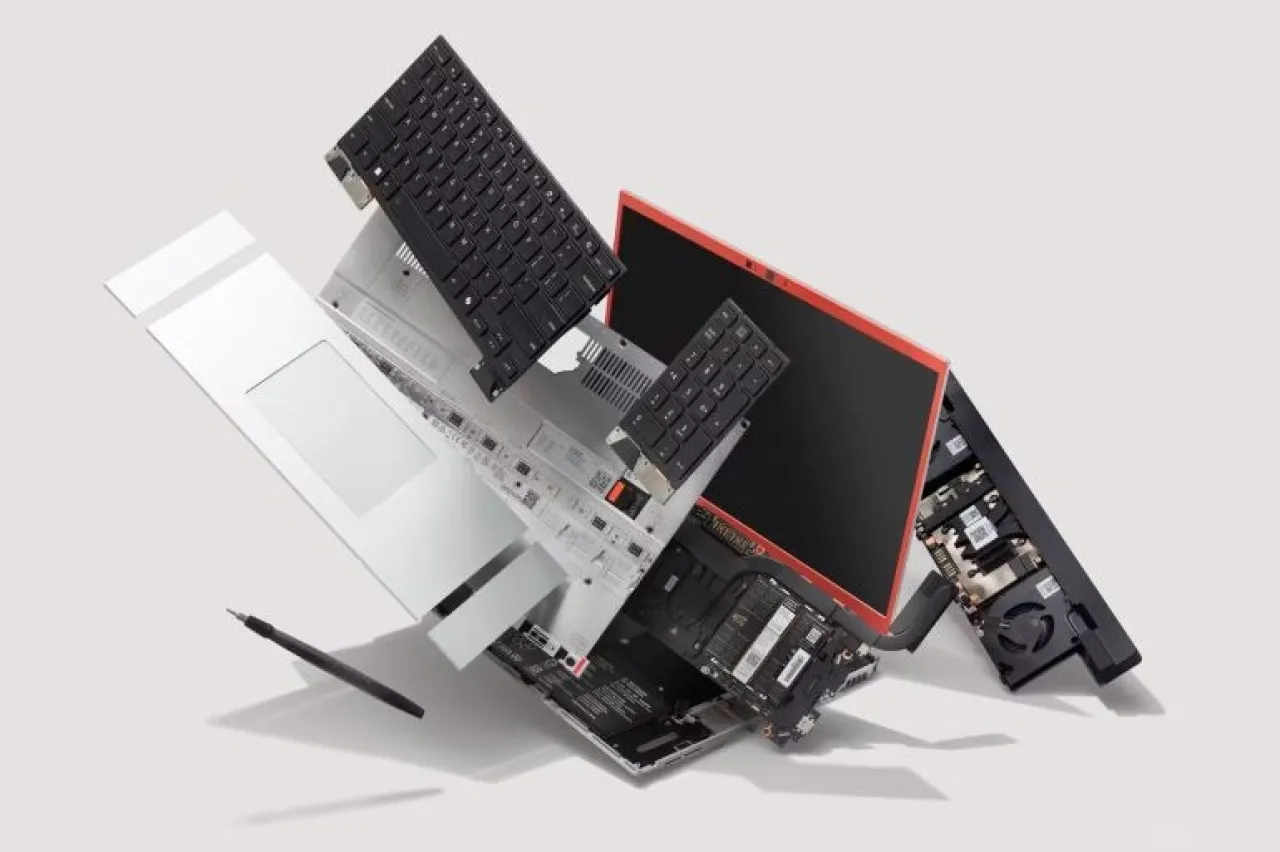 وتتنوع القطع التي يمكن للمستخدم الحصول عليها، بدءا من اللوحة الأم والمنافذ الخارجية التي يمكن توصيلها بالحاسوب مباشرة وحتى القطع الرئيسية مثل البطارية وبطاقة الاتصال بالإنترنت وآلية التبريد والشاشات والبطاقة الرسومية في بعض الحالات.