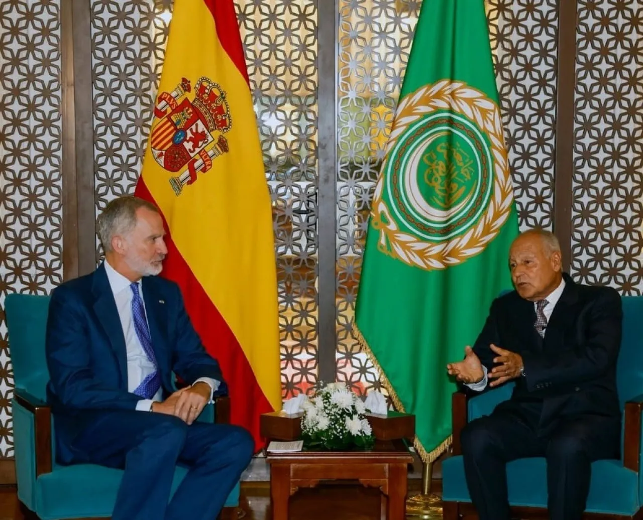 خبرني - بحث الأمين العام لجامعة الدول العربية أحمد أبو الغيط، اليوم الخميس مع جلالة الملك فيليبي السادس ملك إسبانيا تطورات الأوضاع في قطاع غزة وذلك بمقر الأمانة العامة بالقاهرة، في إطار زيارة رسمية يقوم بها جلالته إلى جمهورية مصر العربية.