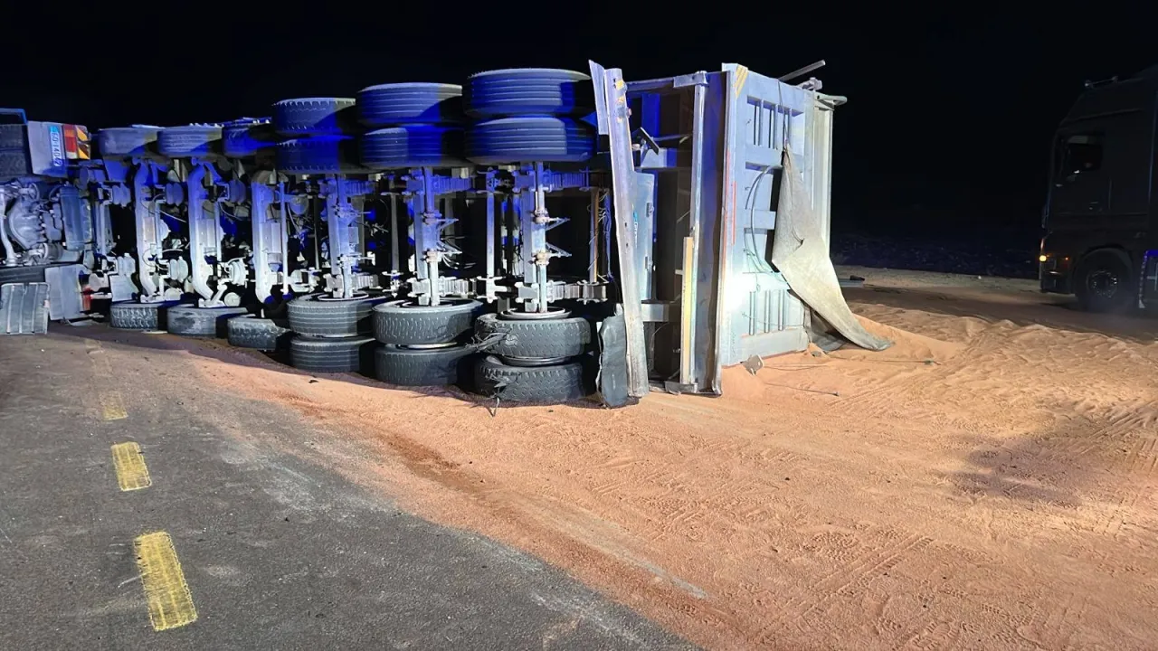 خبرني - تتعامل الدوريات الخارجية في اثناء كتابة الخبر ( منتصف ليل الثلاثاء / الاربعاء) مع اثر مروري نتيجة تدهور وانقلاب تريلا شحن محملة بمادة (الفوسفات) على الطريق الصحراوي ، منطقة القويرة ما قبل جسر الاتحاد باتجاه العقبة نتيجة سقوط الحمولة بالكامل على الطريق.