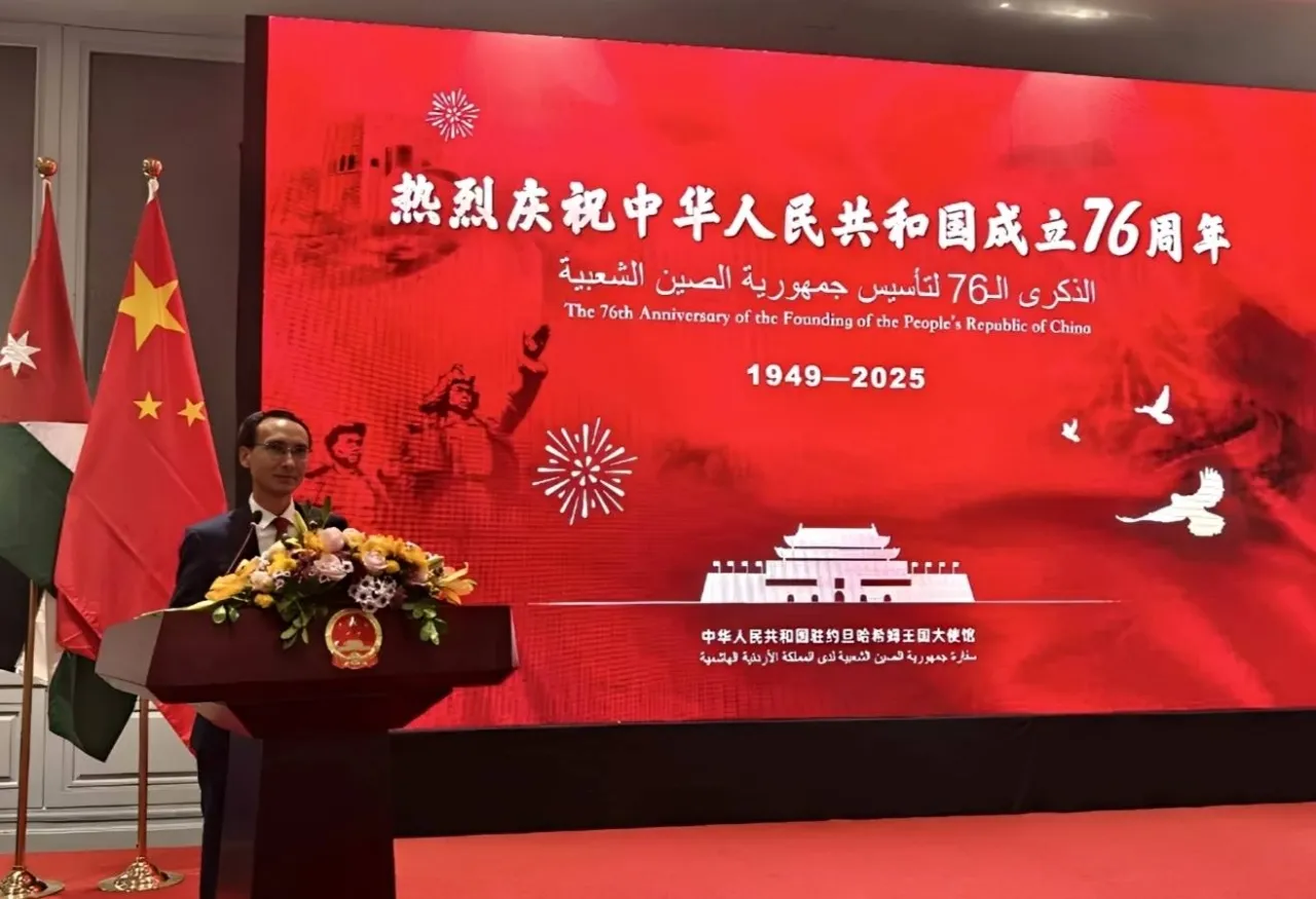 أقامت السفارة الصينية لدى الأردن ، يوم الخميس 25 سبتمبر ، حفل الاستقبال احتفالا بالذكرى الـ76 لتأسيس جمهورية الصين الشعبية، حيث حضر الحفل الدكتورة نانسي نمروقة وزيرة دولة للشؤون الخارجية و الدكتور عون الخصاونة رئيس الوزراء الأسبق وغيرهما من الممثلين الأردنيين من الحكومة ومجلس الأمة والقوات المسلحة والأمن العام، وكبار الشخصيات السياسية والأصدقاء الأردنيون من مختلف الأوساط، ورؤساء البعثات الدبلوماسية الأجنبية لدى الأردن، وممثلو المؤسسات والشركات الصينية والجاليات الصينية والطلاب والمعلمين الصينيون.