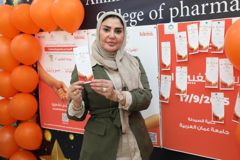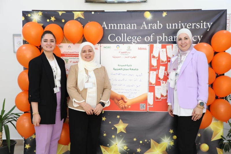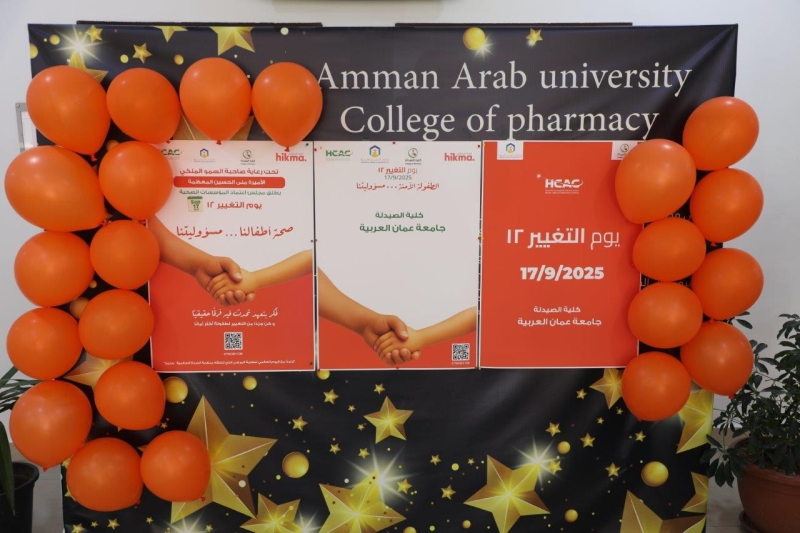 خبرني - في إطار التزام جامعة عمان العربية بالمسؤولية المجتمعية ودعمها للمبادرات الوطنية الهادفة إلى تحسين جودة الرعاية الصحية، نظمت كلية الصيدلة في الجامعة فعالية يوم التغيير 2025 الذي يصادف 17 أيلول من كل عام، والذي ينظمها مجلس اعتماد المؤسسات الصحية في الأردن سنويًا بالتزامن مع اليوم العالمي لسلامة المرضى.