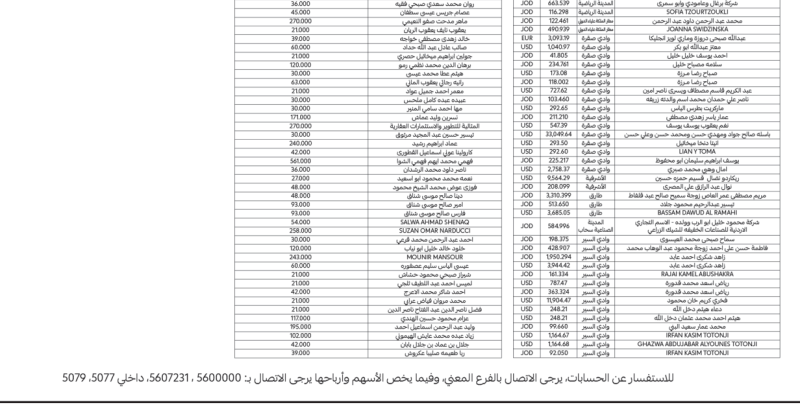 خبرني - نشر البنك العربي أسماء عملاء ومساهمين ستؤول أموالهم إلى الحكومة، وذلك في حال عدم تقدمهم بالمطالبة بها خلال ثلاثة أشهر من تاريخ اليوم.