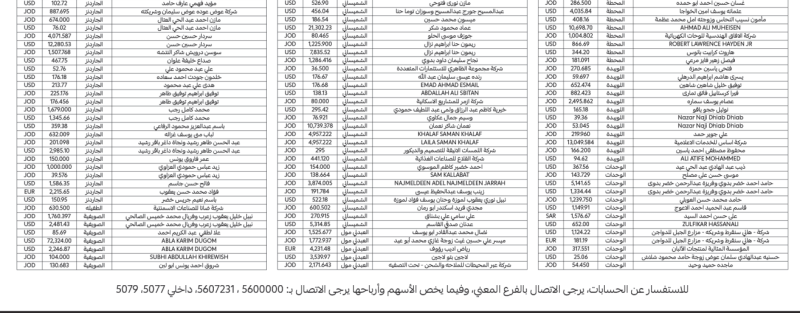 ودعا البنك المعنيين إلى الاطلاع على تفاصيل الإعلان المنشور في الصحف المذكورة أعلاه، واتخاذ الإجراءات اللازمة خلال المهلة المحددة، تفاديًا لتحويل أرصدتهم إلى الحكومة.
