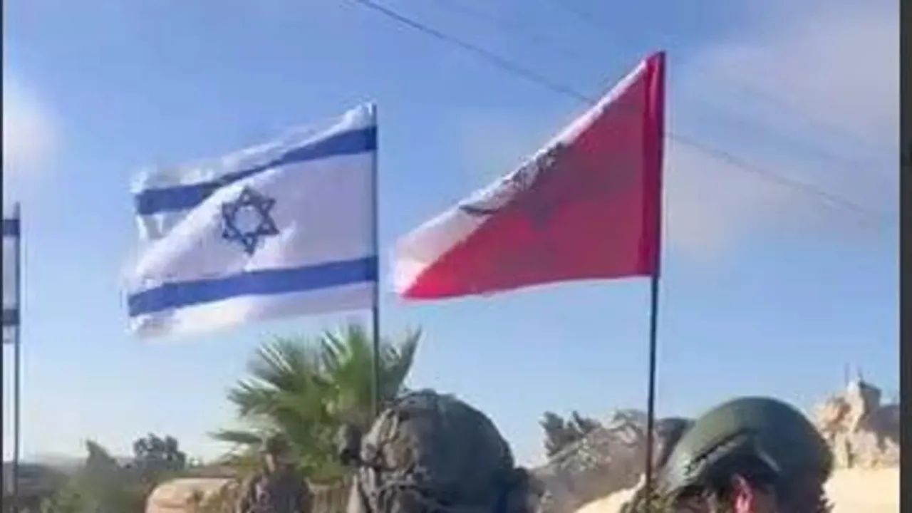 Khaberni - In a provocative scene that sparked widespread anger, a video of Israeli soldiers raising the Israeli flag and chanting the national anthem "Hatikvah" in the center of Quneitra city, southern Syria, went viral on social media platforms.